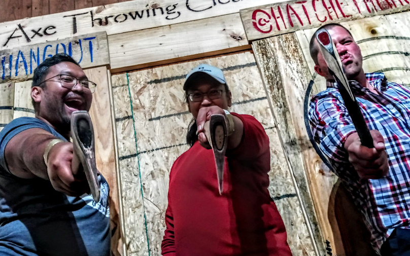 - After a brief check-in your group will be instructed on the house rules, and taught how to throw an axe by our Axeperts