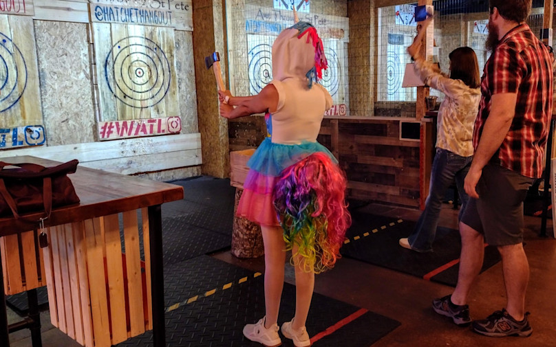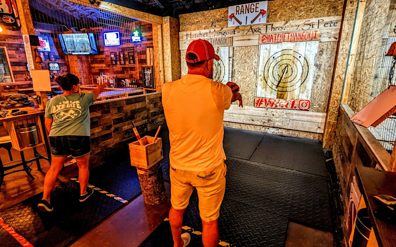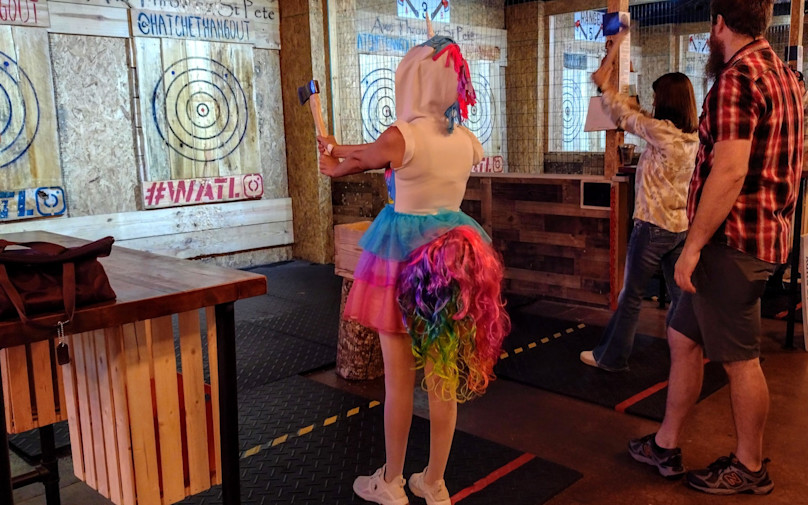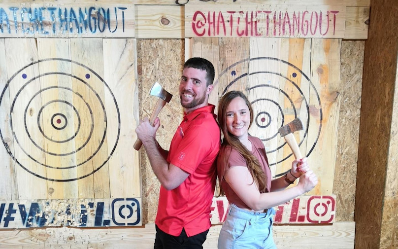- Have fun using your newfound skills to throw axes at a target and see if you can nab the bullseye